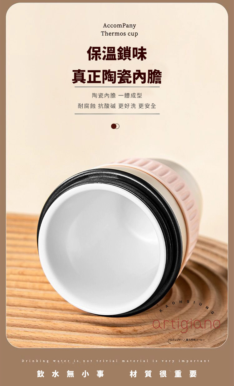 Artigiano陶瓷內膽保溫杯,將傳統工藝與現代科技完美結合。每一口都帶來溫暖和品質,讓您在忙碌的生活中保持愉悅和精力充沛。