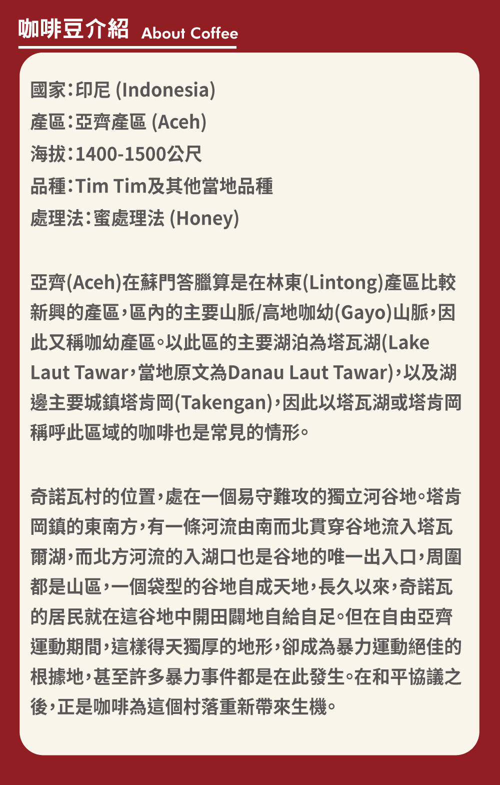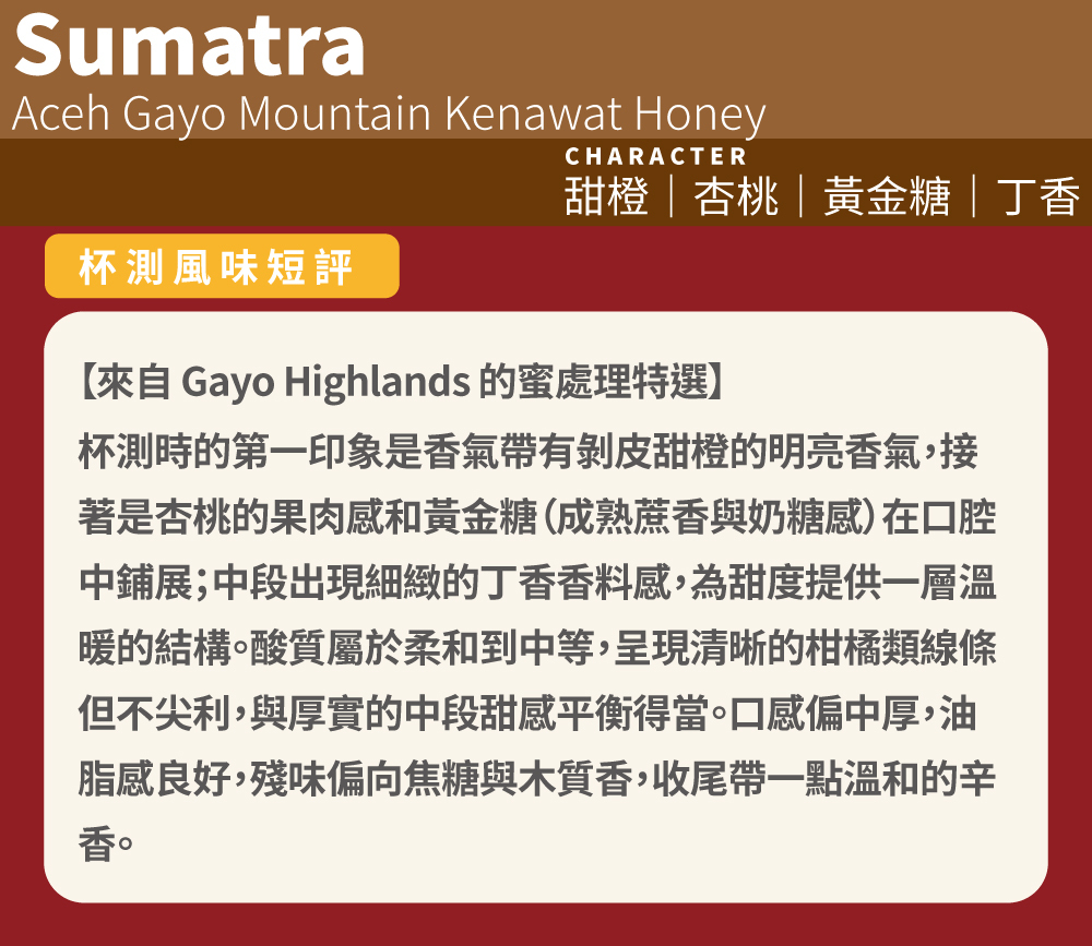 【來自 Gayo Highlands 的蜜處理特選】